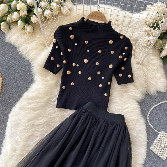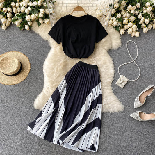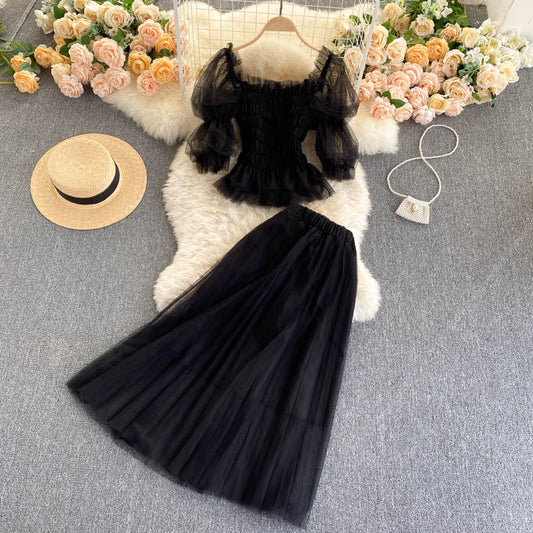 Black A line two pieces dress 666