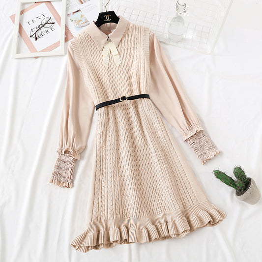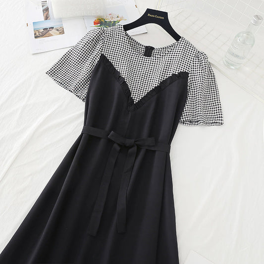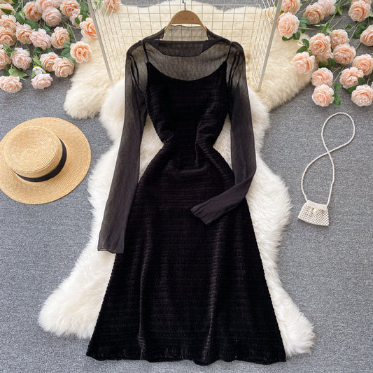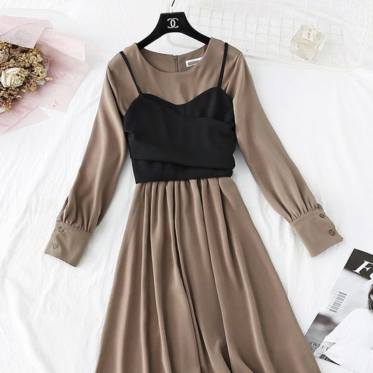 New stitched fake two piece dress women's French dress 4636