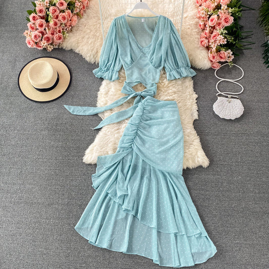 Cute regular polka dot dress two pieces dress 575