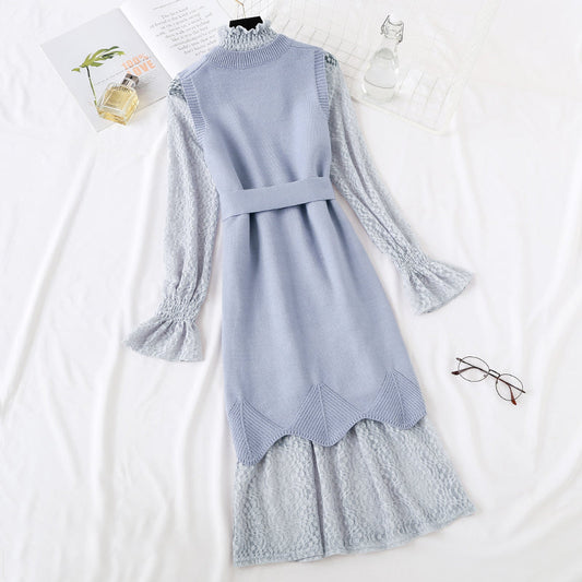 Minority LACE VEST knitted dress fashion suit two piece set female 2473