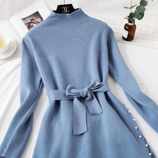 Fake two piece neck and shoulder bag hip dress 2857