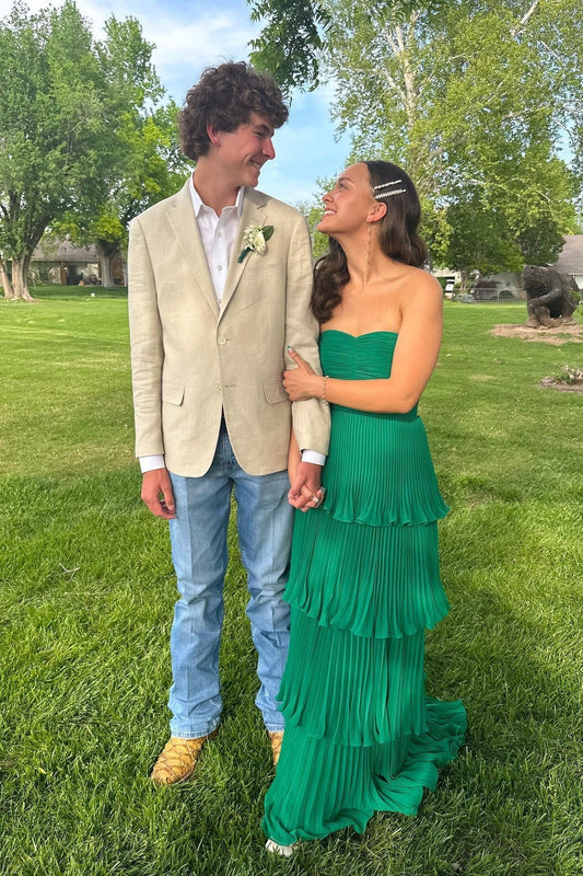 Apple Green Bustier Chiffon Tiered Maxi Dress Formal Dresses