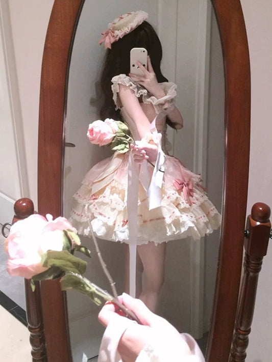 Cute Ball Gown Short Sleeves 16th Birthday Dress Lolita Dress Champagne Birthday Outfits DP0215