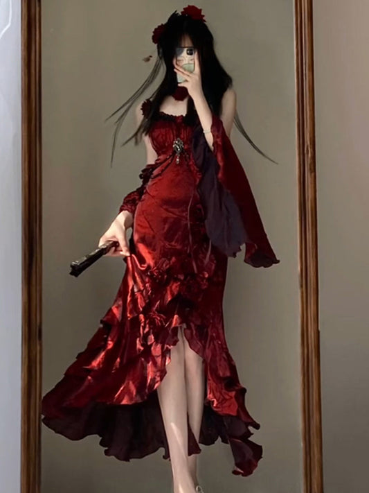 Vintage High Low Spaghetti Straps Burgundy 16th Birthday Dress Lolita Dress Satin Birthday Outfits DP0217