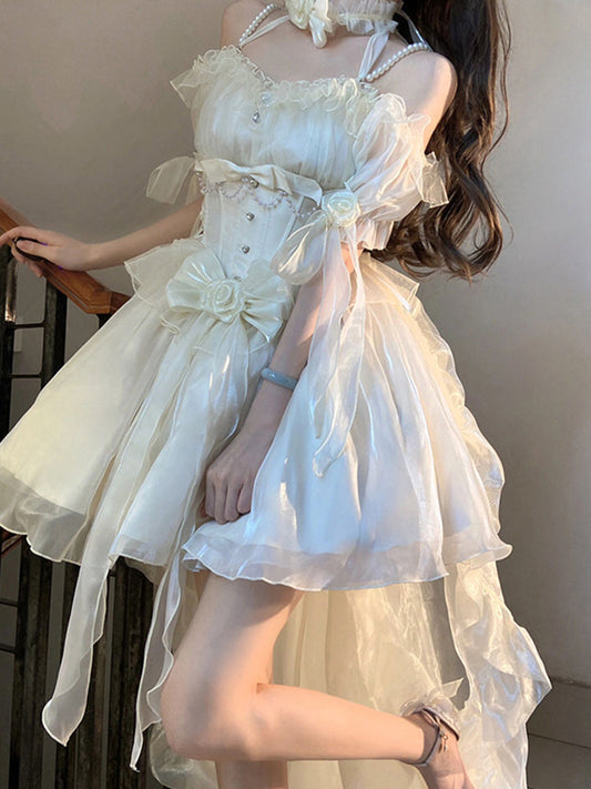 Vintage High Low Off The Shoulder Short Sleeves 16th White Birthday Dress Lolita Dress Birthday Outfits DP0221