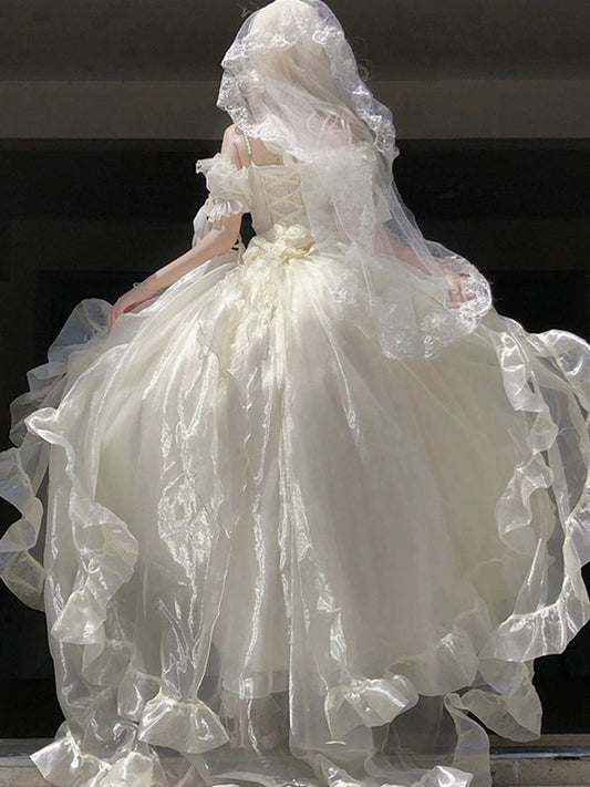 Vintage Ball Gown Off The Shoulder Lace Summer Long Holiday Dresses 16th Birthday Dress Lolita Dress Flowers Birthday Outfits W1131
