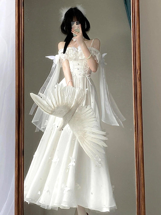 Vintage A Line Spaghetti Straps Summer Long Holiday Dresses 16th Birthday Dress Lolita Dress White Birthday Outfits W1129