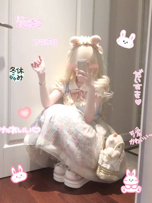 Vintage Ball Gown Short Sleeves Sweet 16th Floral Short Birthday Dress Lolita Summer Dress Birthday Outfits W1120