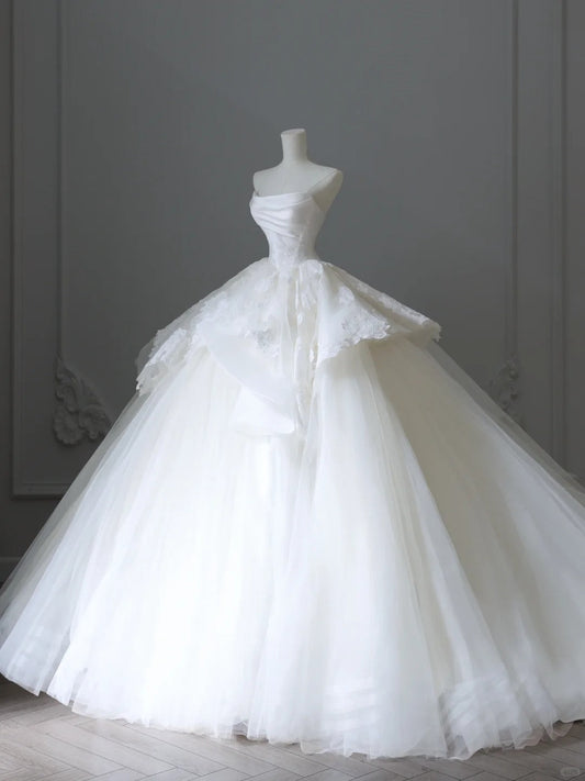 Girly Playful Bow A-line Tulle Satin Floor-length Wedding Dress P2534