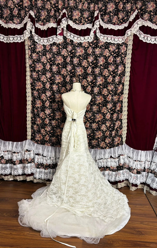 Retro Elegant Strapless White Heavy Beaded Lace Mermaid Wedding Dress P2990