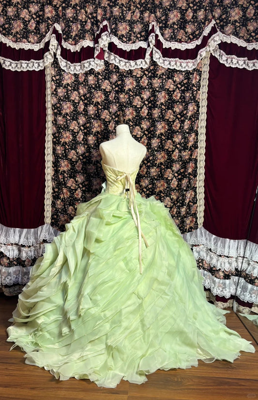 Gorgeous and fresh green three-dimensional flower layered skirt fluffy wedding dress P3014