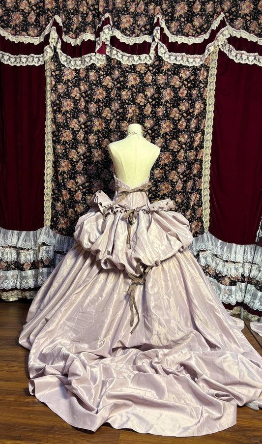 Taro Purple Strapless Satin Flower Bud Open Back Wedding Dress with Train P3024