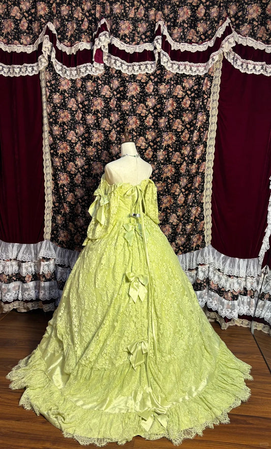Grass Green Lace Flower Opening Ceremony Skirt Satin Floor-Length Wedding Dress P3044