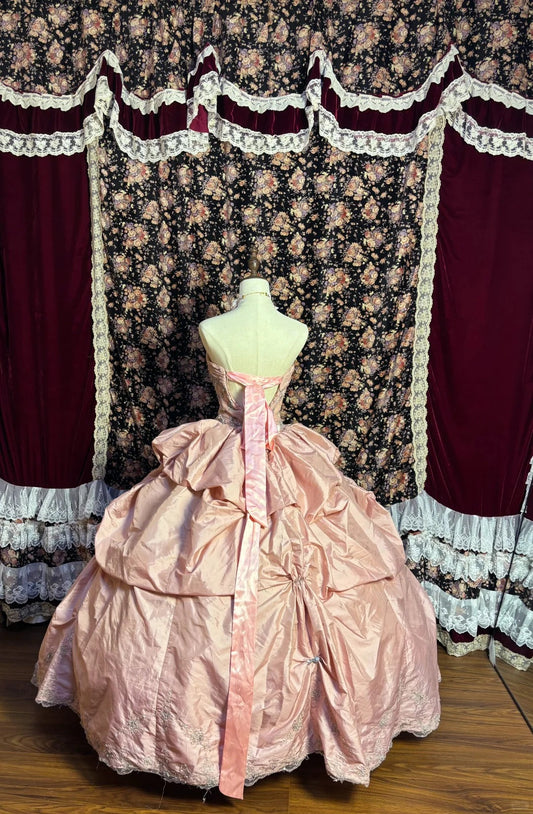 Princess Pink Tube Top 3D Embroidered Sequined Fishbone Bow Puffy Wedding Dress P3025