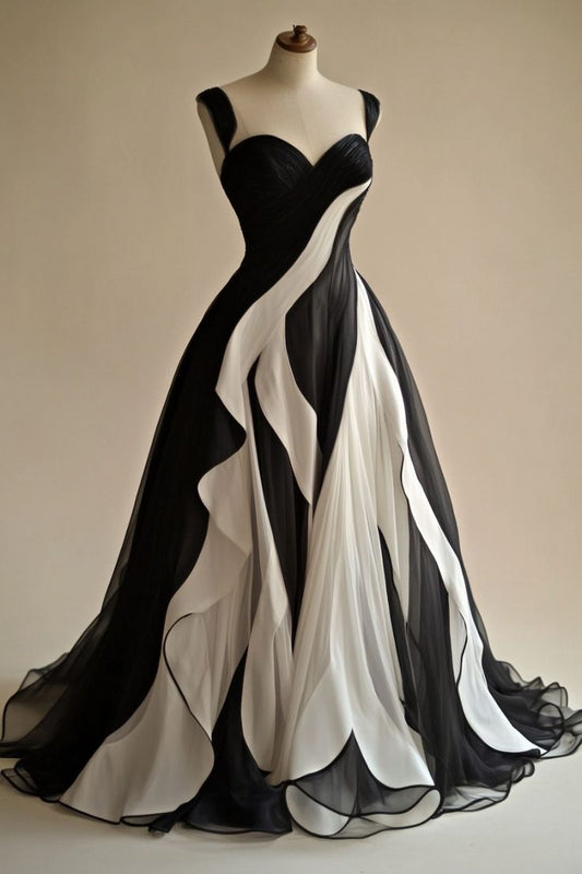 Black and White Elegant Fashion Long Chiffon Ball Gown Evening Gown Wedding Dress gh4223