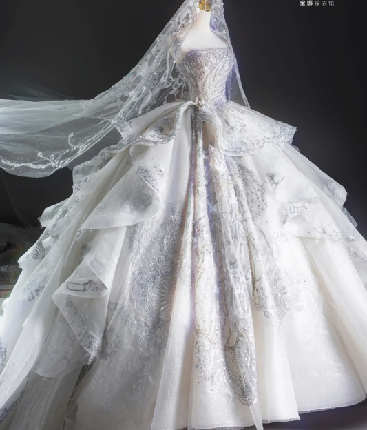 Unique Ball Gown Strapless White Long Sequin Wedding Dresses Brides Dress DP320