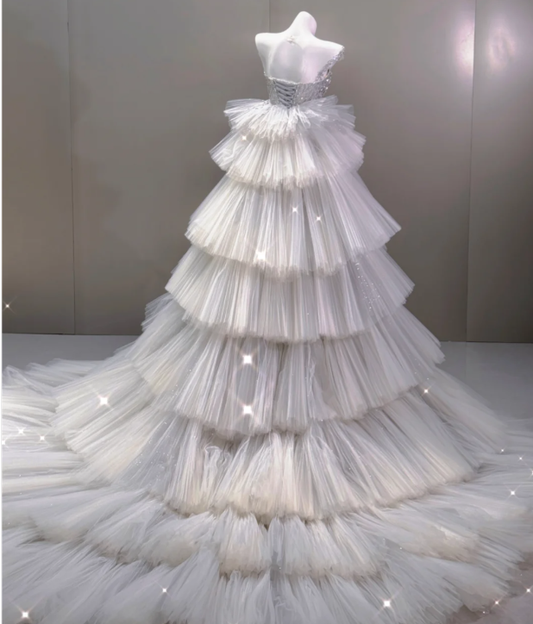 Unique Ball Gown Sweetheart Ruffles Layers Long Satin Wedding Dresses Brides Dress DP323