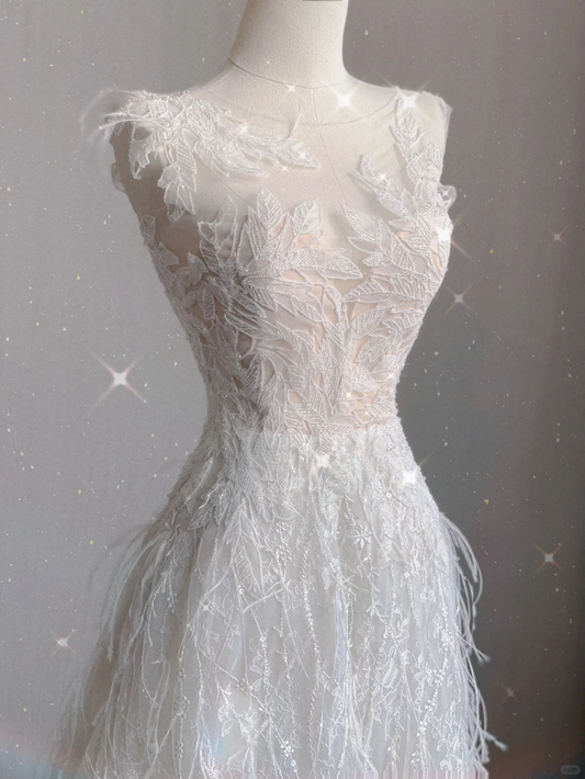 Unique A line Strapless Lace Long White Wedding Dresses Summer Brides Dress DP372