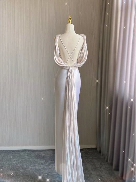 Simple Sheath V Neckline Long Satin Backless Wedding Dresses Brides Dress DP362