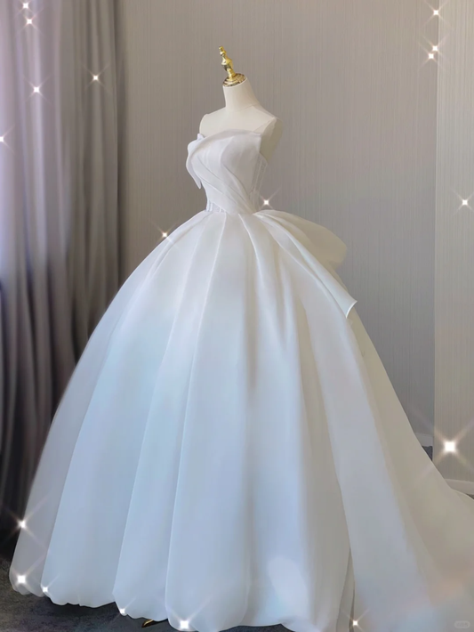 Classy Elegant Ball Gown Strapless White Long Satin Wedding Dresses Brides Dress DP328