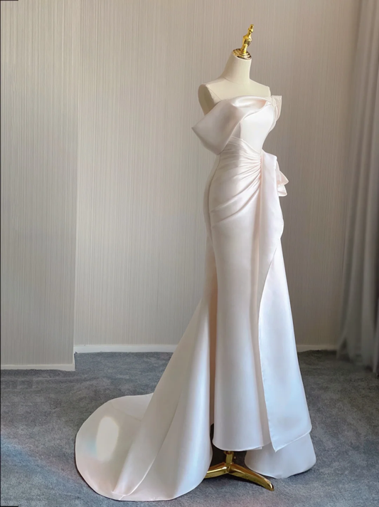 Simple Mermaid Strapless Neckline Long Satin White Wedding Dresses Brides Dress DP361
