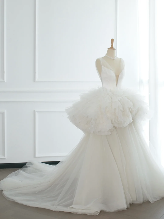 Elegant Wedding Dress Ball Gown V Neck White Tulle Summer Long Wedding Dresses Bride Dress Bridal Gowns DH367