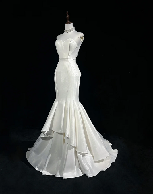 Pretty Wedding Dress Mermaid Strapless Layers Ruffles White Tulle Long Wedding Dresses Bridal Gowns Brides Gown DH409