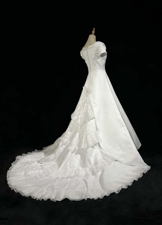 Vintage Wedding Dress 1950s 1940s Mermaid Spaghetti Straps Layers Ruffles White Satin Long Wedding Dresses Bridal Gowns Brides Gown DH523