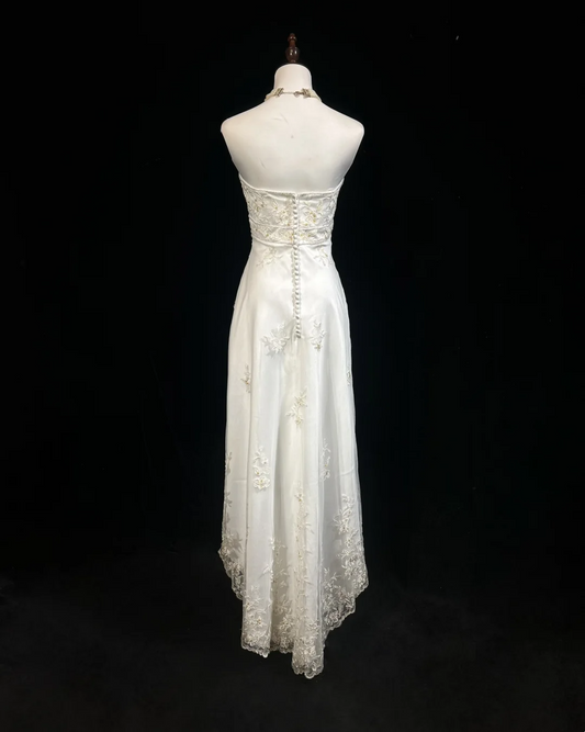 Vintage Wedding Dress 1970s High Low Strapless Lace White Long Wedding Dresses Bridal Gowns Elegant Brides Gown DH553