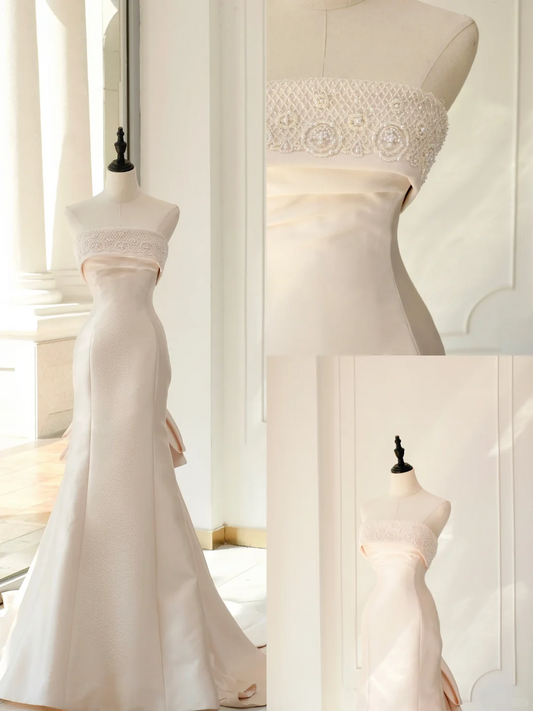 Classic Bridal Gown Mermaid Strapless Sleeveless Satin Long Light Pink Wedding Dresses Elegant Bridal Gowns Brides Dress DH894