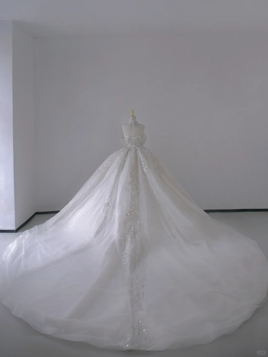 Unique Ball Gown Sweetheart Sequin Long White Wedding Dresses Brides Dress DP418