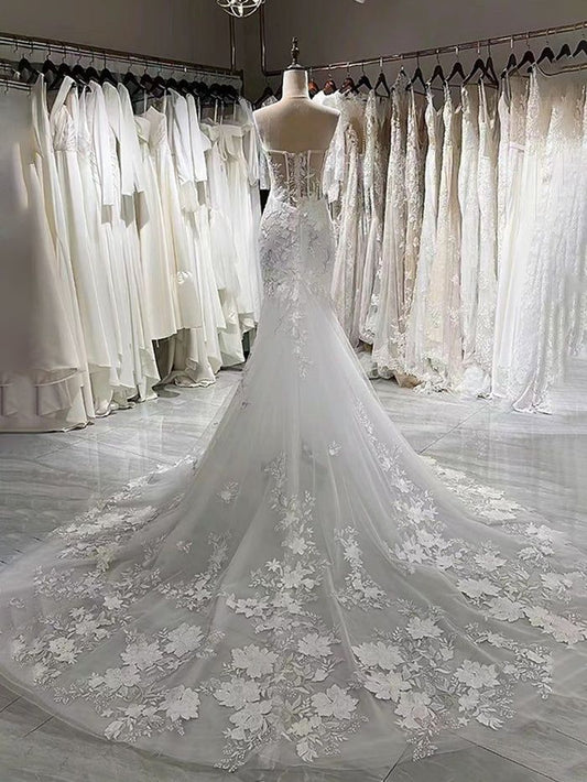 Stunning Mermaid Sweetheart Lace Appliques Wedding Dress With Train DP607