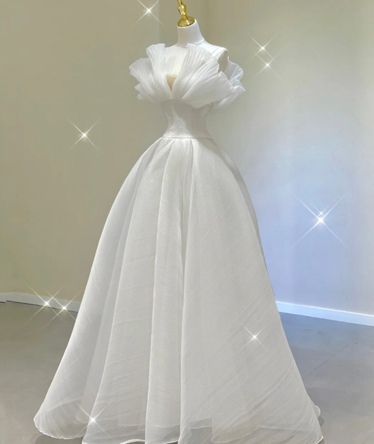 Unique A line Strapless Long White Wedding Dresses Summer Brides Dress DP408