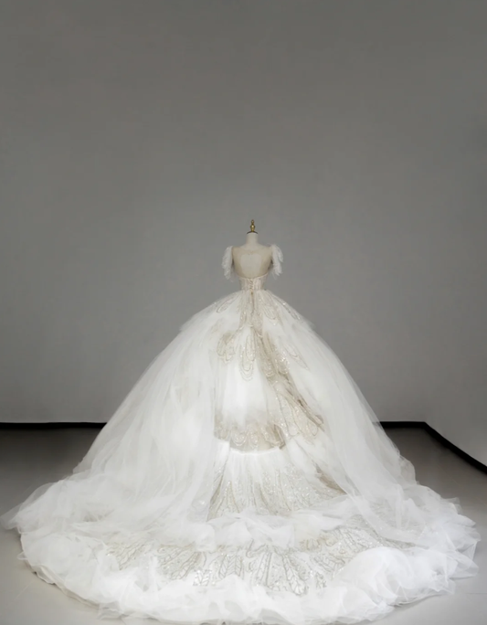 Dreamy Ball Gown Off The Shoulder Tulle Long White Wedding Dresses Summer Brides Dress DP517