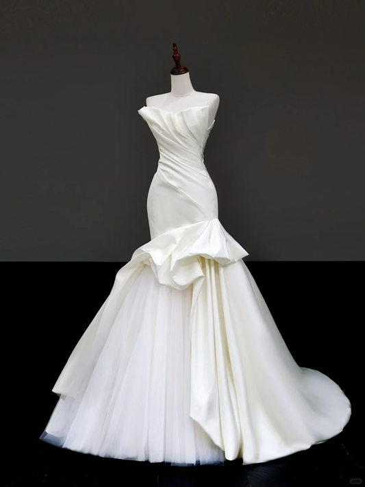 Simple Bridal Gown Mermaid Strapless Satin White Wedding Dresses Minimalist Bridal Gowns DP870