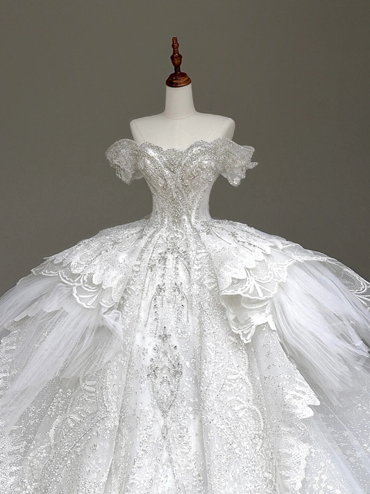 Princess Bridal Gown Ball Gown Off The Shoulder White Sequin Beads Wedding Dresses Winter Bridal Gowns DP863