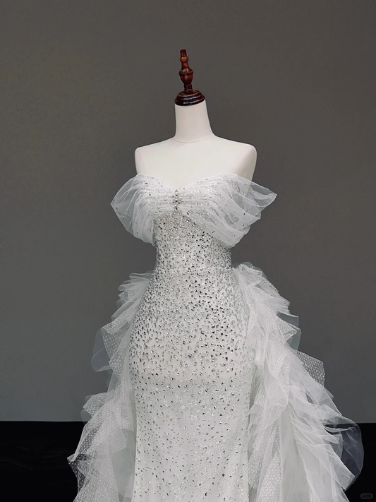 Timeless Bridal Gown Mermaid Sweetheart White Tulle Wedding Dresses Bridal Gowns DP873