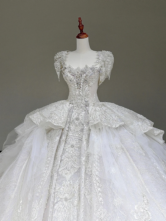 Princess Bridal Gown Ball Gown Square Neckline White Sequin Beads Wedding Dresses Winter Bridal Gowns DP877