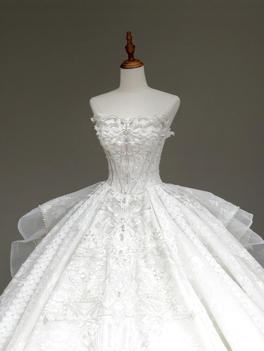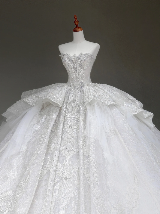 Ethereal Wedding Dress Ball Gown Strapless Lace White Wedding Dresses Corset Bridal Gowns DP1178