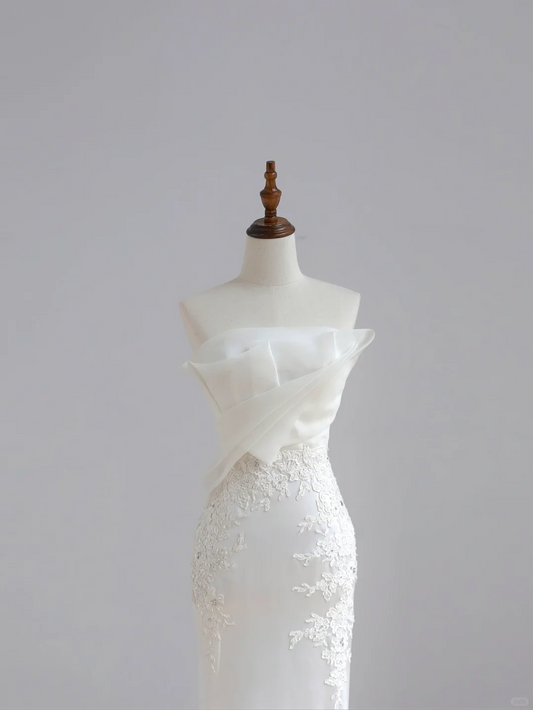Simple Bridal Gown Mermaid Strapless Satin White Wedding Dresses Minimalist Bridal Gowns DP1527
