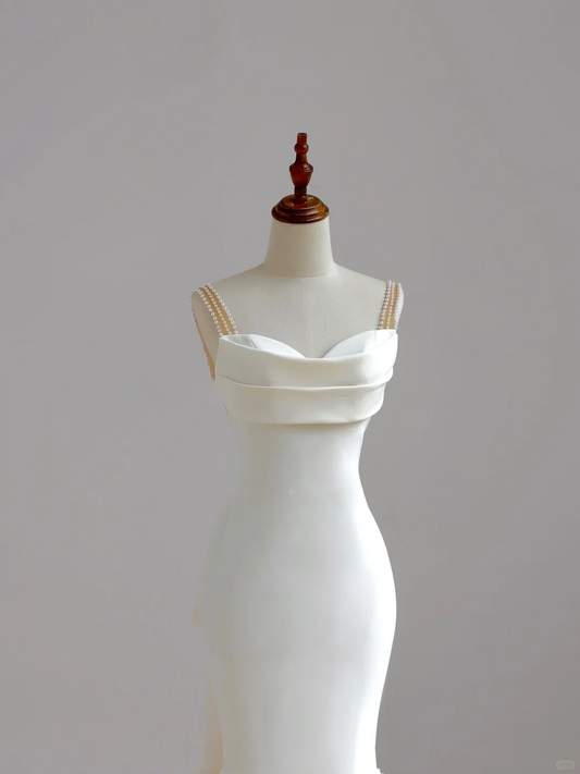 Simple Bridal Gown Mermaid Spaghetti Straps Satin White Wedding Dresses Minimalist Bridal Gowns DP1520