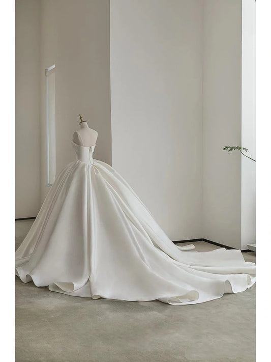 Romantic Bridal Gown Ball Gown Strapless Satin White Wedding Dresses Minimalist Bridal Gowns DP1186