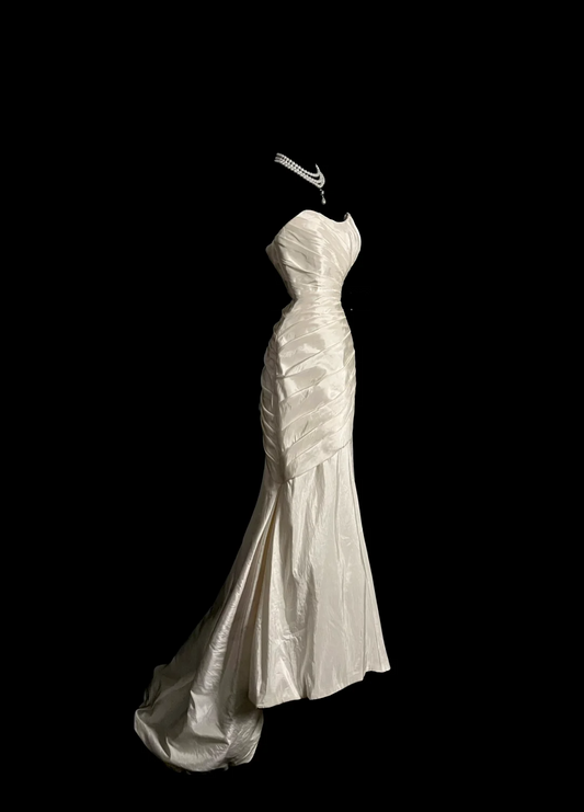 Vintage Bridal Gown Mermaid Strapless Ivory Wedding Dresses Minimalist Bridal Gowns DP932