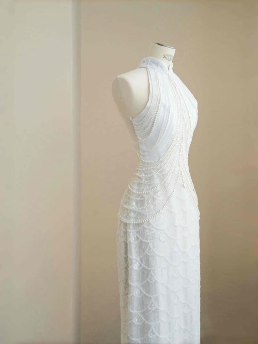 Pretty Bridal Gown Mermaid High Neck Sequin White Long Wedding Dresses Modest Bridal Gowns D2723