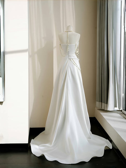 Pretty Bridal Gown Ball Gown Strapless White Long Wedding Dresses Minimalist Bridal Gowns DP1841