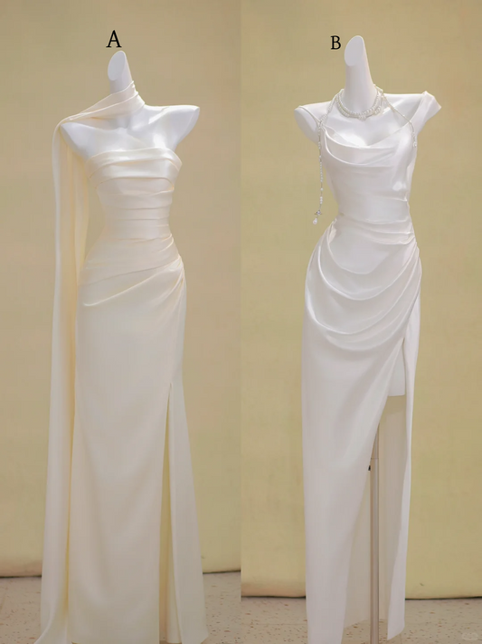 Pretty Wedding Dress Sheath Strapless Satin Ivory Long Wedding Dresses Bridal Gowns DP1858