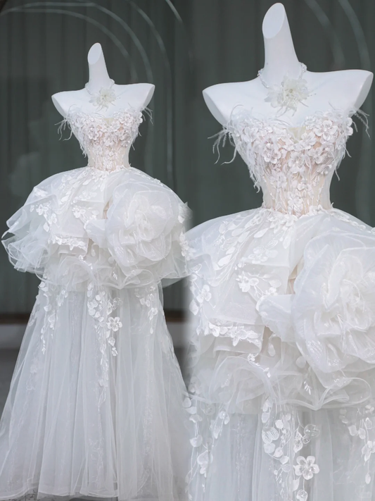 Pretty Wedding Dress Ball Gown Strapless Tulle Lace White Long Wedding Dresses Bridal Gowns DP1855