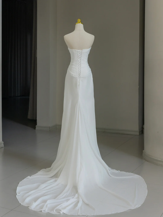 Modest Bridal Gown Mermaid Sweetheart Sleeveless Chiffon Long White Wedding Dresses Elegant Bridal Gowns DH1129