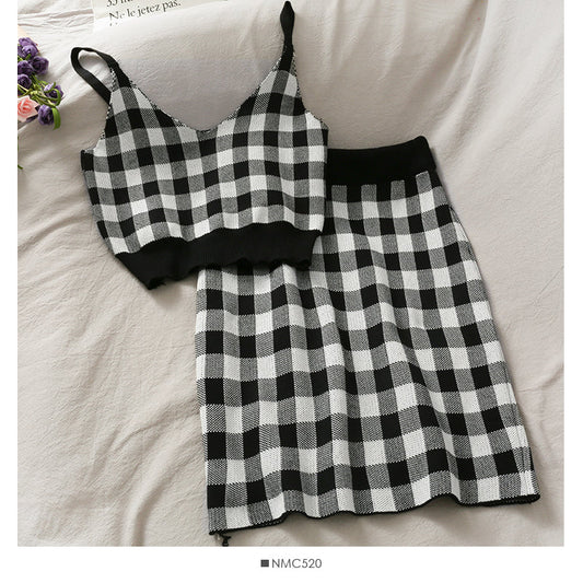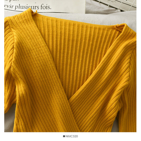Open navel short low neck knitted vest elastic waist bag hip skirt 2543