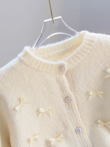 Preppy Style 3D Flower Bow Cardigan Sweater ED0250